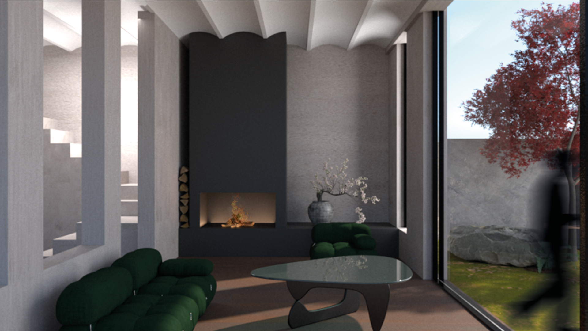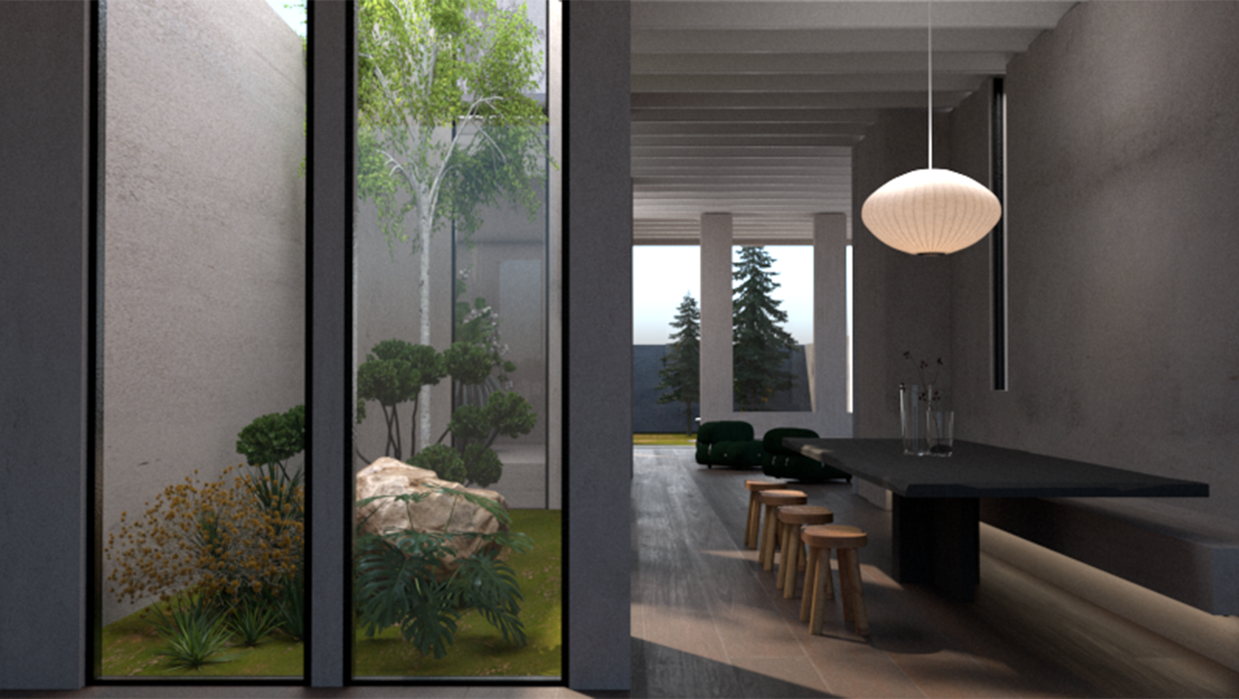 The assignment were to refurbish a house for the artist Isamu Noguchi. It was clear that Noguchi felt as a “mis-fit” in his outer world, never truly feeling at home due to his upbringing as a half American half Japanese in Japan. All his life he felt abandoned from his father, and ignored by his mother. This led to a life in constant search and loneliness. He found peace in nature as a spiritual person.
